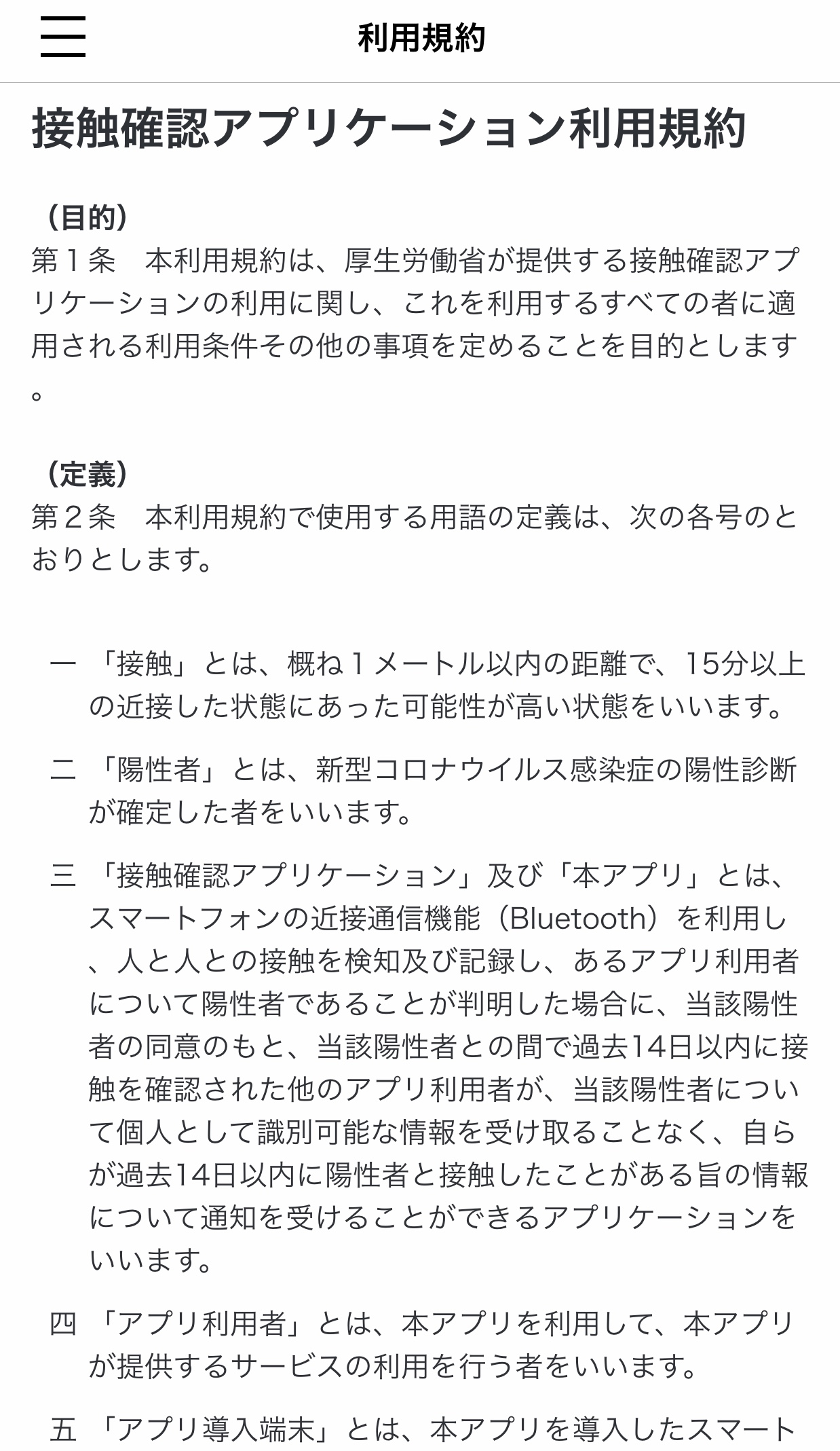 厚生労働省の接触確認アプリ『COCOA』をインストールしました。