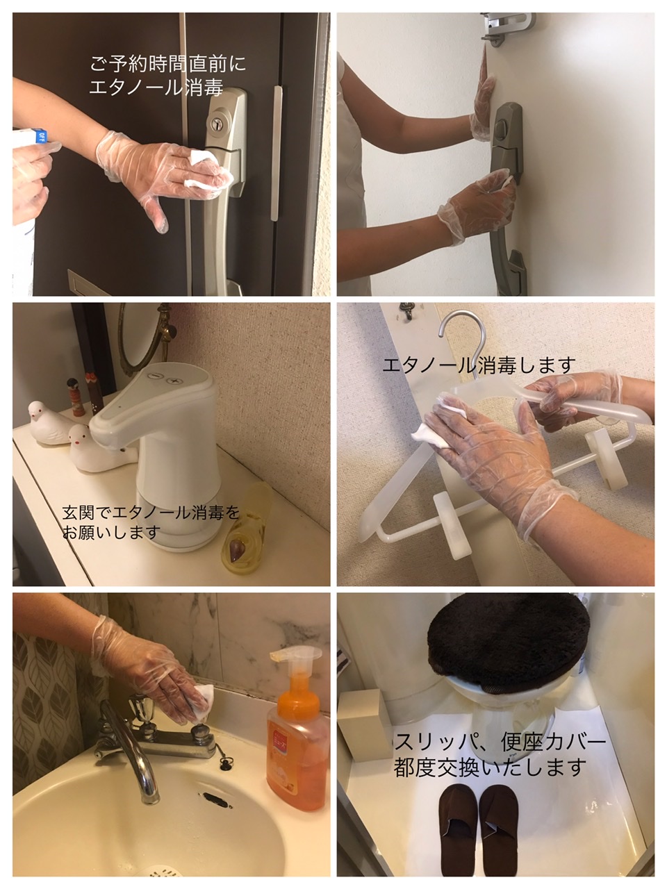 お客様とお客様の滞在時間に1時間の空き時間を設け、30分以上の換気を行っています。