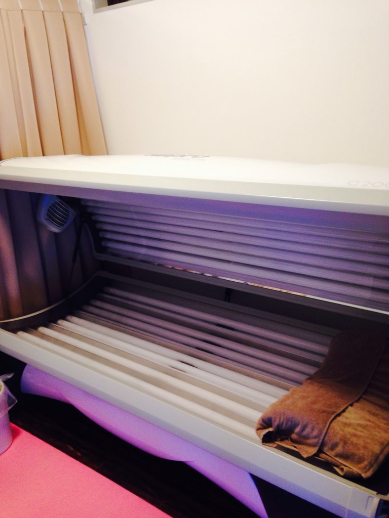 ここに寝そべり光を浴びると、真皮まで届いてコラーゲンが活性され、