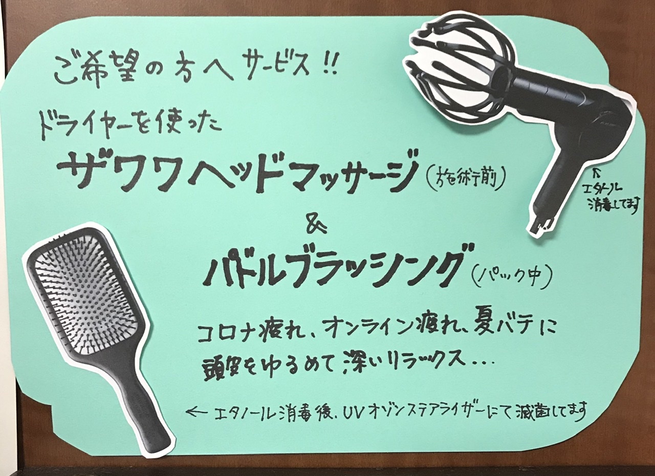 ザワワヘッドマッサージ&パドルブラッシングのサービス、好評です!