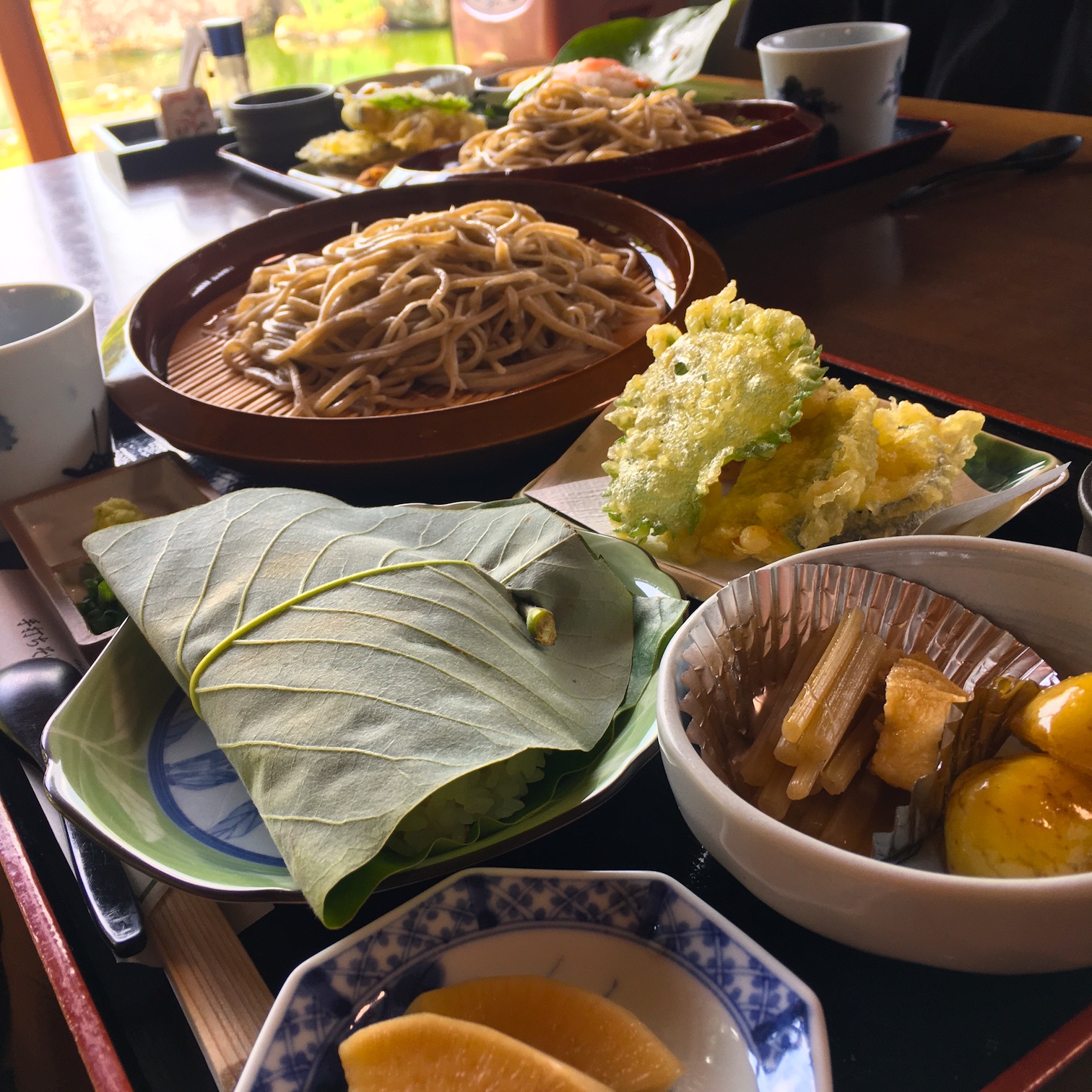 まず、2ヶ月ぶりの外食で美味しいお蕎麦と、朴葉寿司をいただきました。