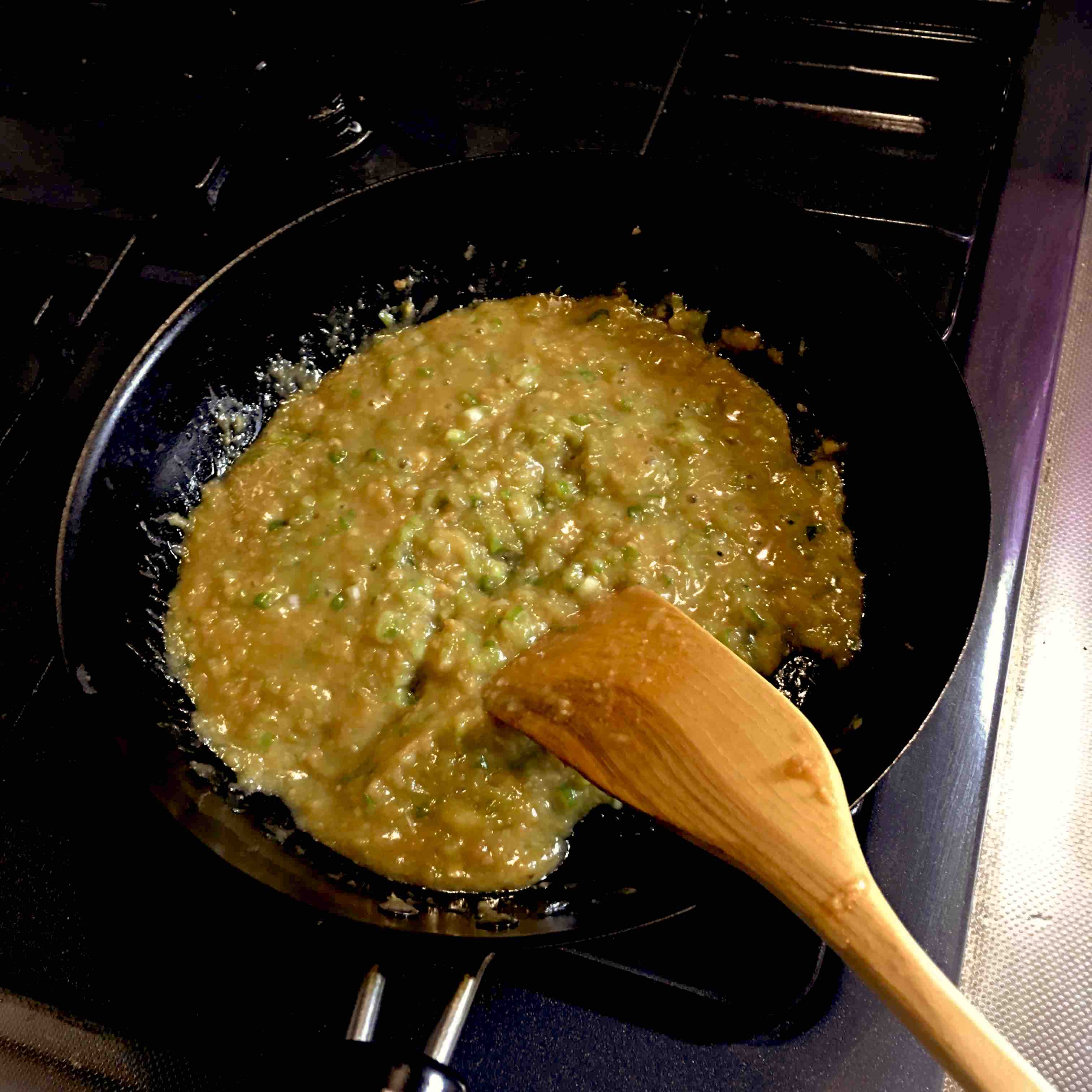 油を引いて、長ネギのみじん切りを炒め、