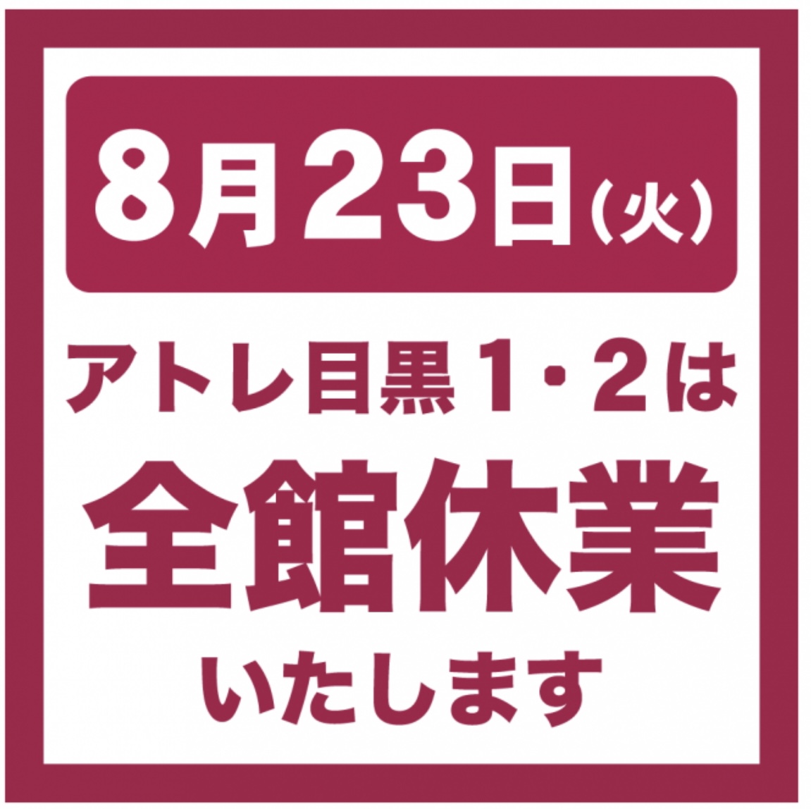 - 2022.08.21 23日はアトレお休み