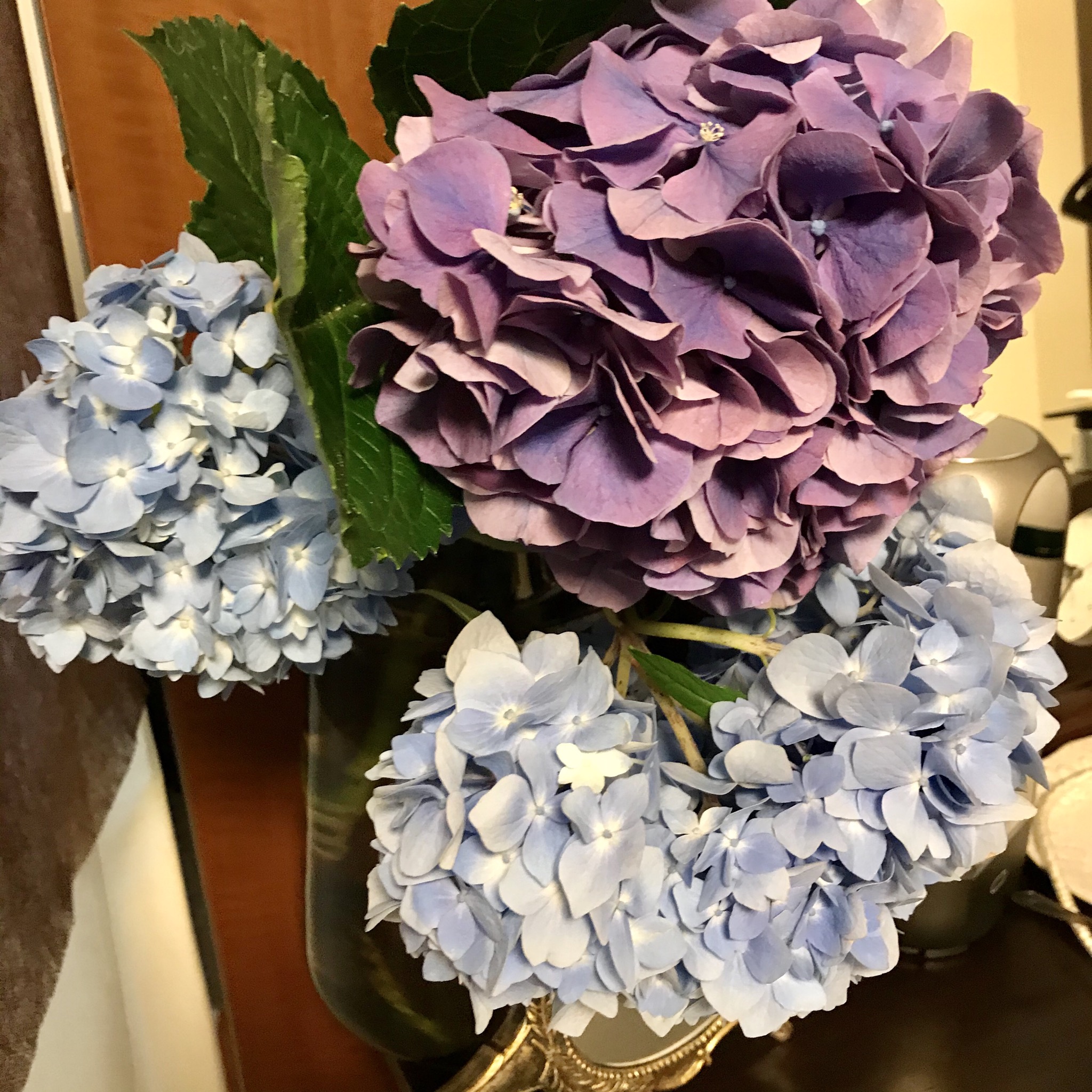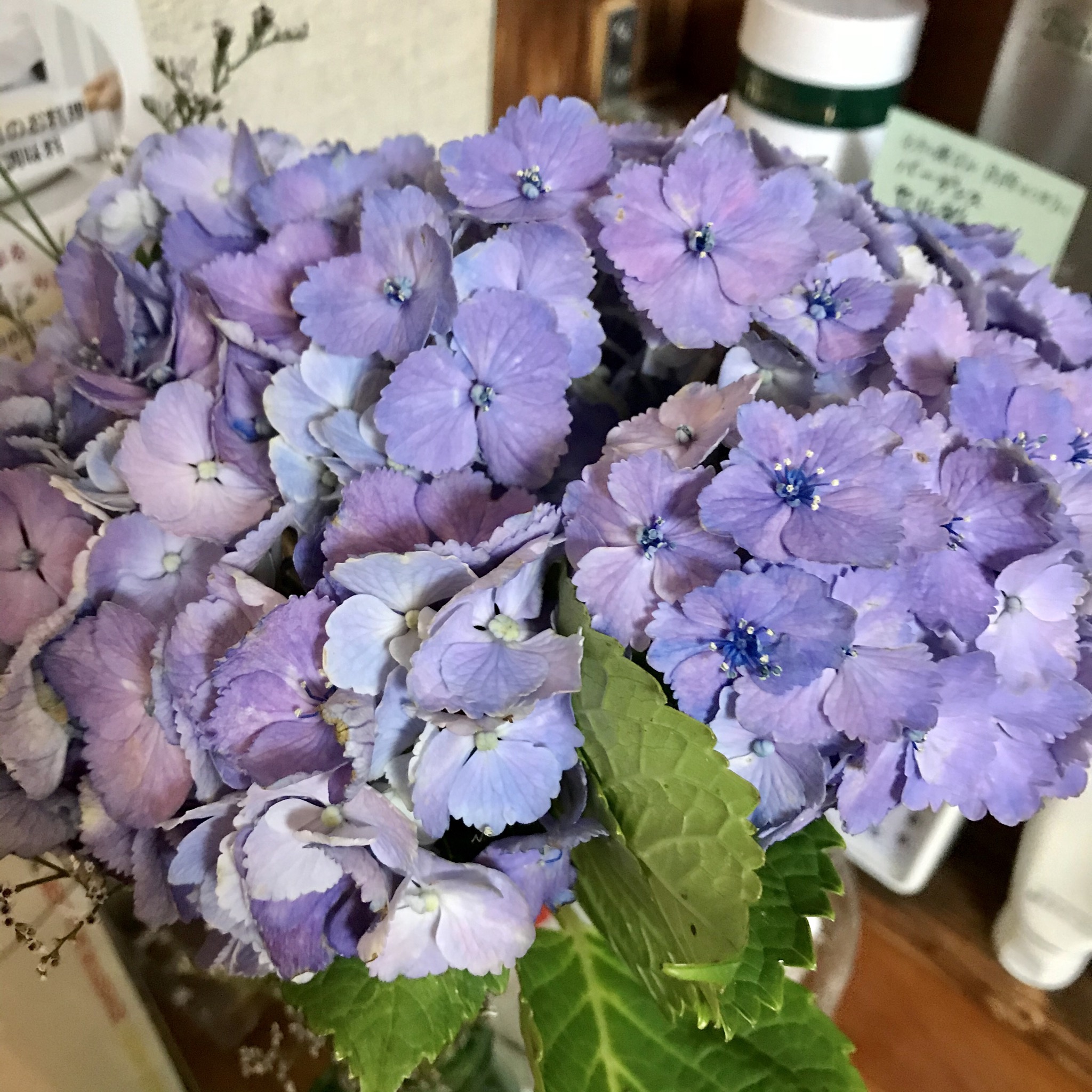 先日いただいた花束の紫陽花たちもギリギリがんばってます!