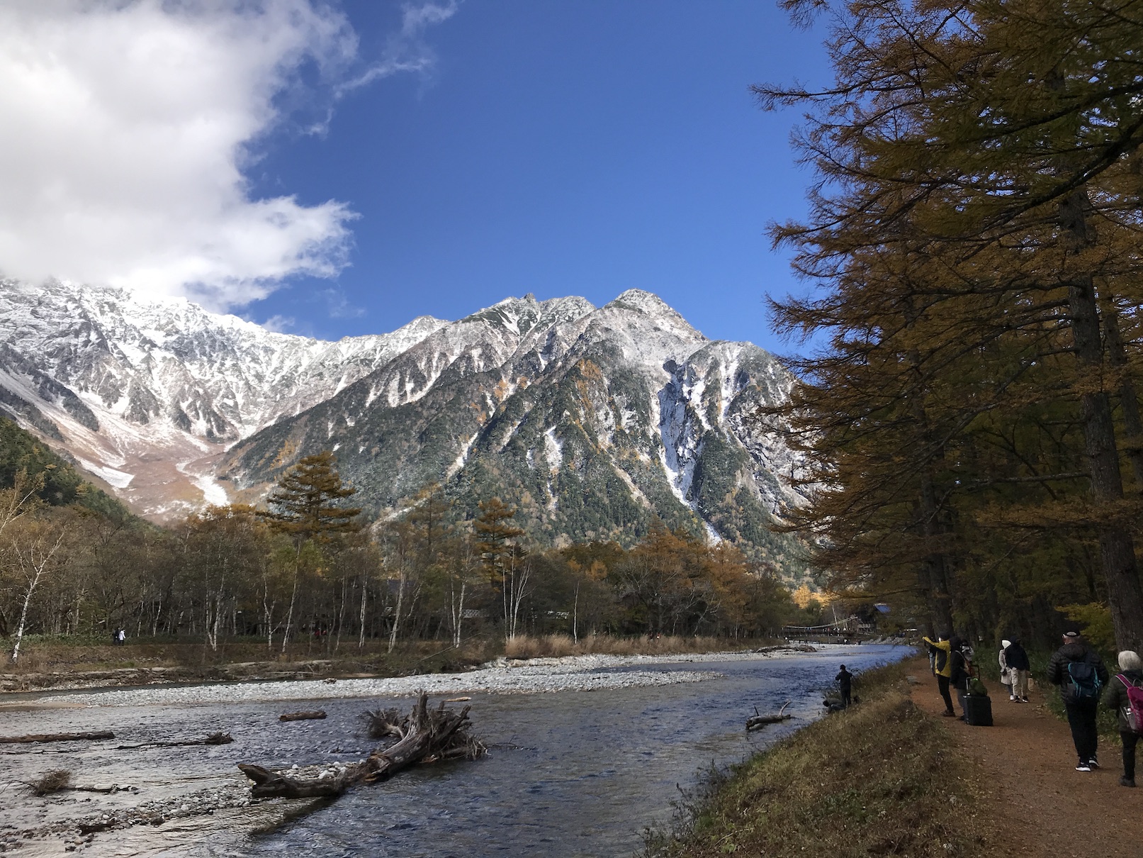 大正池から、1時間ほどの散策で、河童橋あたりまで、12000歩でした。