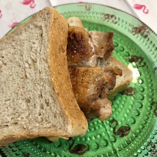 せっかくのパリパリチキンなので、お昼はチキンサンドにしましたよ。美味しかった!