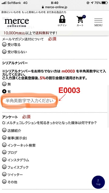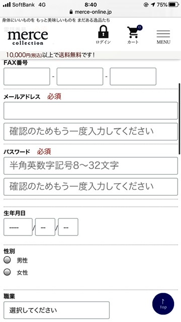 「メルチェ」のサイトに新規登録で