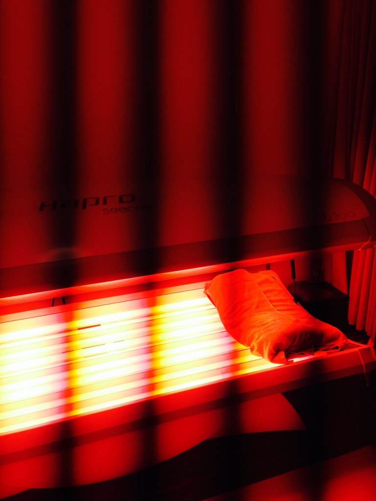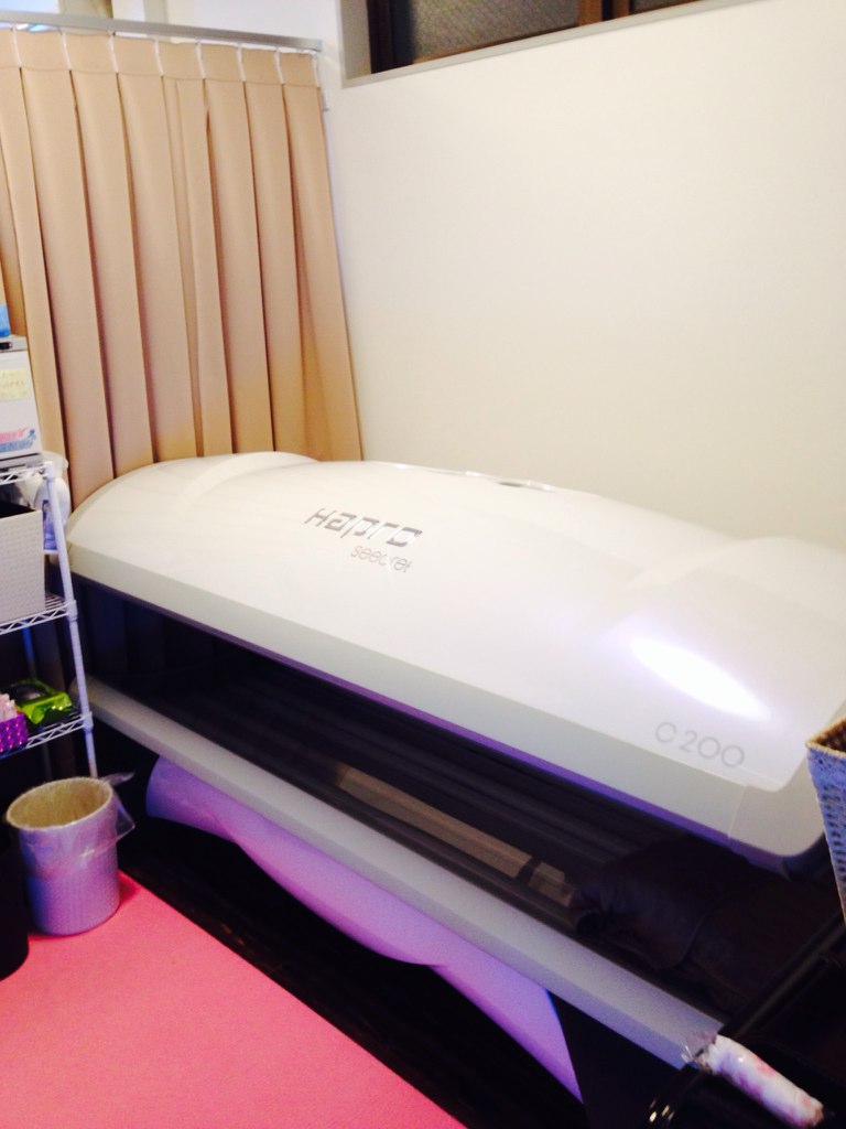ここに寝そべり光を浴びると、真皮まで届いてコラーゲンが活性され、