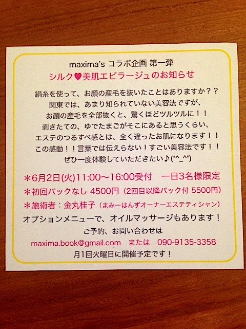 先日お知らせした、シルク♥美肌エピラージュのチラシをお配りします。