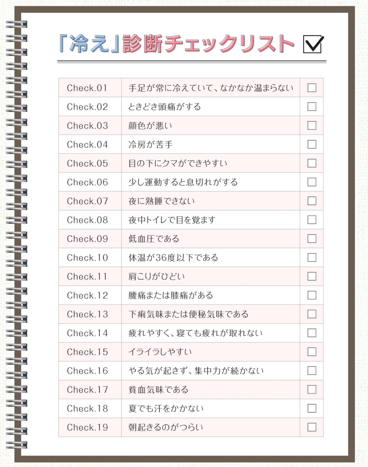 ひとつでも当てはまる当てはまるものがあれば、体が冷えているかも。