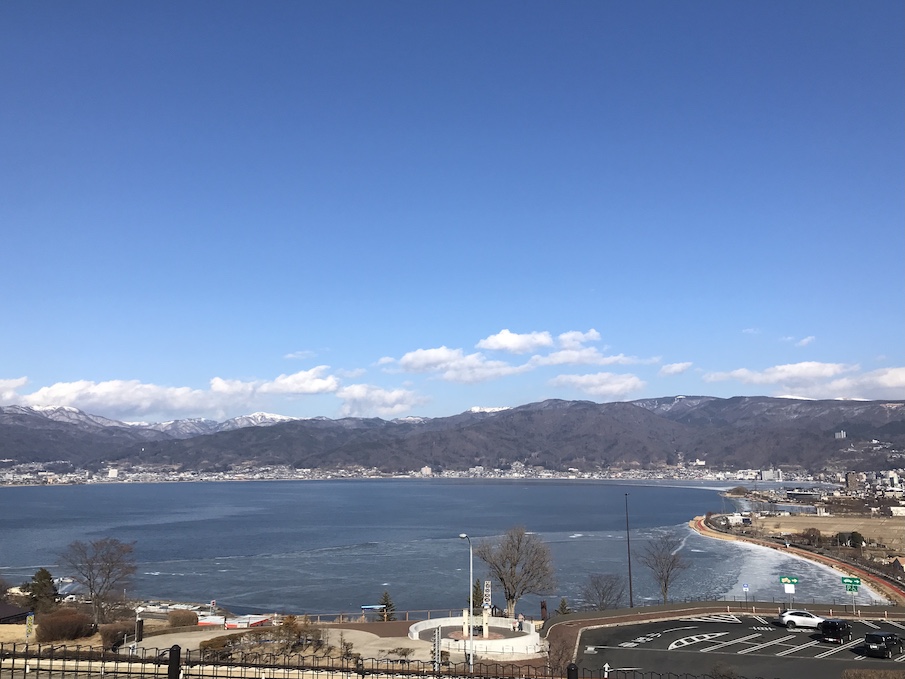 道中、諏訪湖で御神渡りが見られるかと期待してましたが、